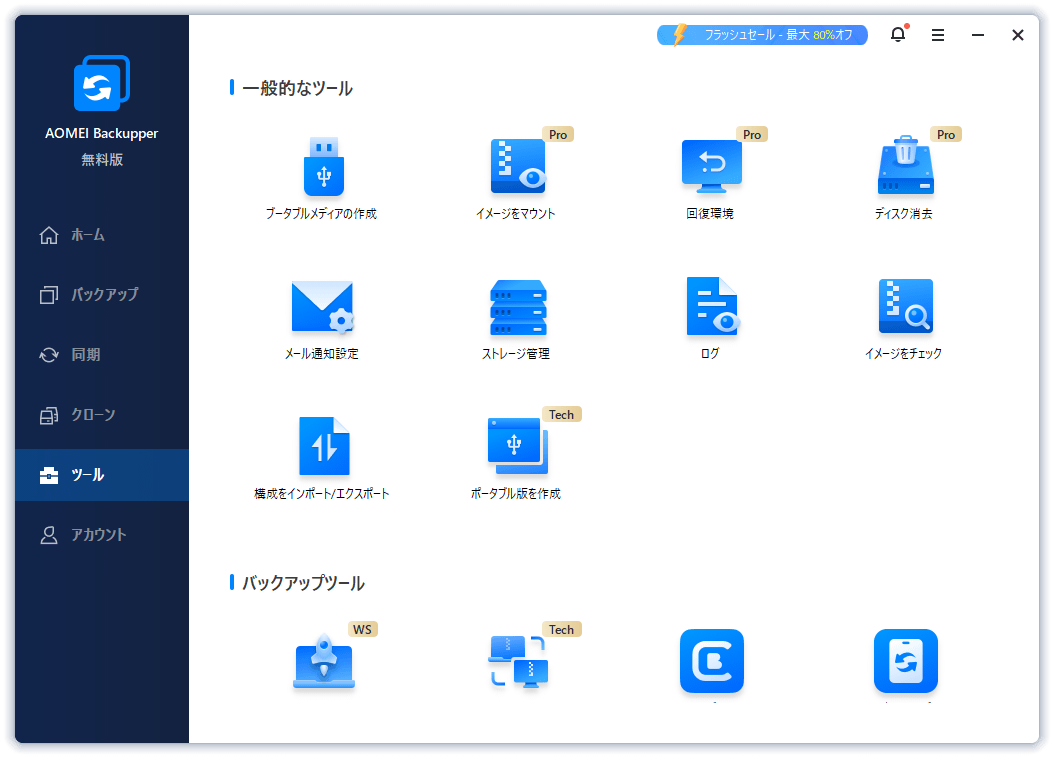 また、システムの緊急時に利用できる CD や USB メディアのブータブルディスクの作成にも対応しています。