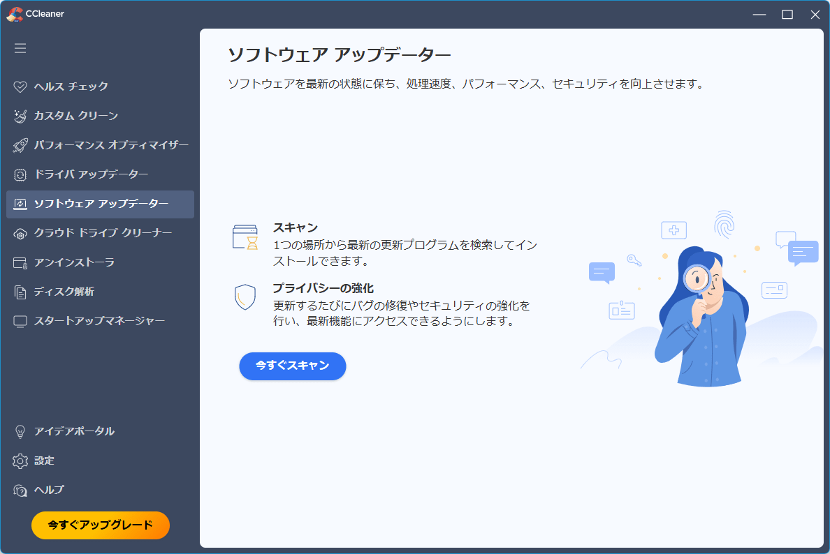 の機能です。無料版ではスキャンのみ実行できます。ソフトウェア アップデーター(Pro 版のみ)