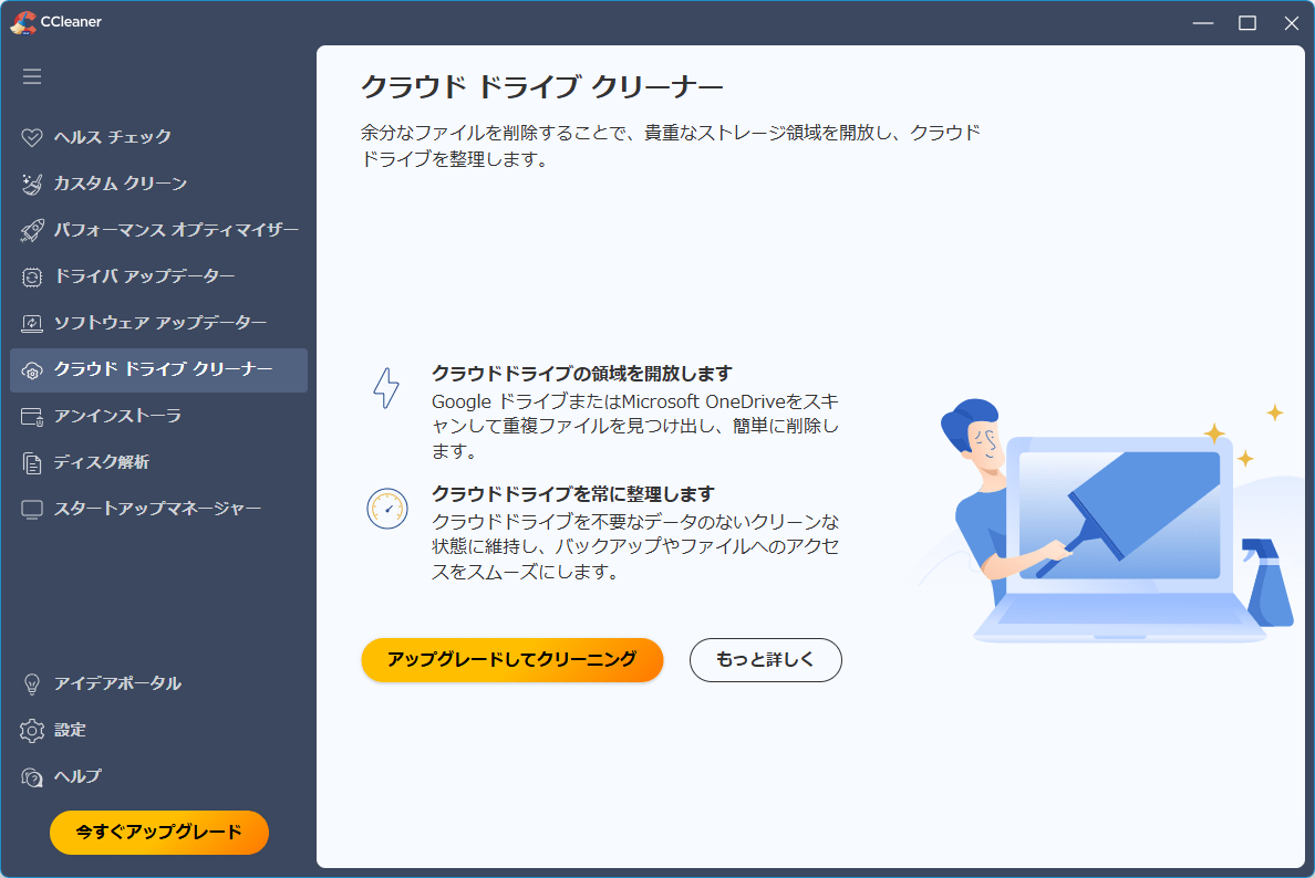 の機能です。無料版ではスキャンのみ実行できます。クラウド ドライブ クリーナー(Pro 版のみ)