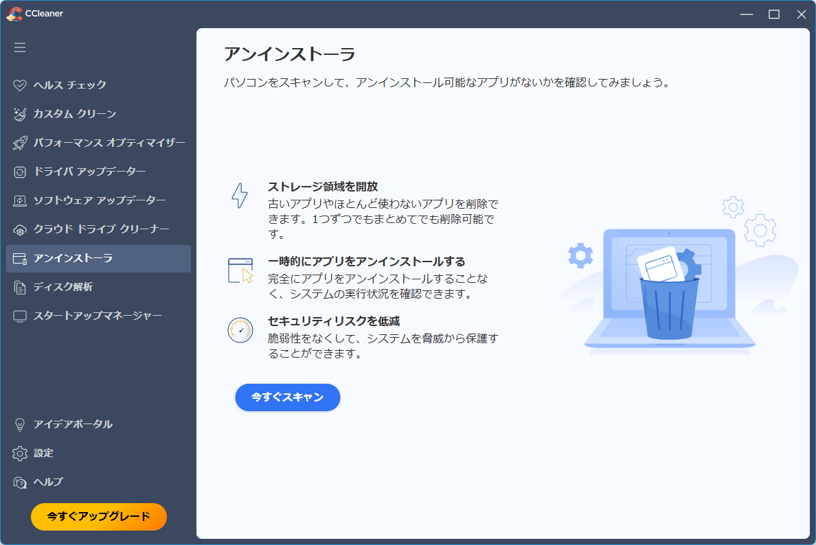 の機能です。無料版ではスキャンのみ実行できます。アンインストーラー