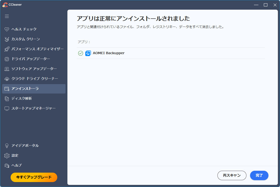 アンインストール完了です。