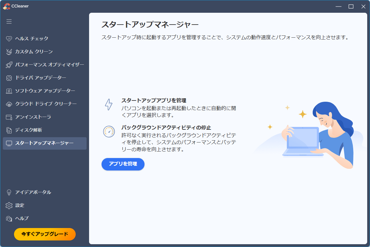 次のような問題を解決して PC を最適化します(※ 以上のみ)。- 不要なスタートアップアプリ