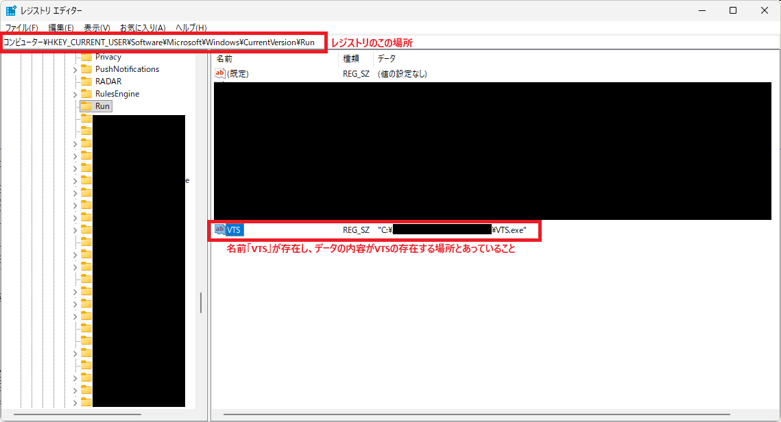 コンピューター\HKEY_CURRENT_USER\Software\Microsoft\Windows\CurrentVersion\Run