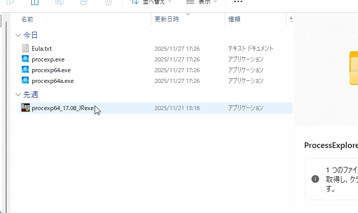 日本語化後に procexp64.exe を実行するとファイルが消えてしまう?ようです。