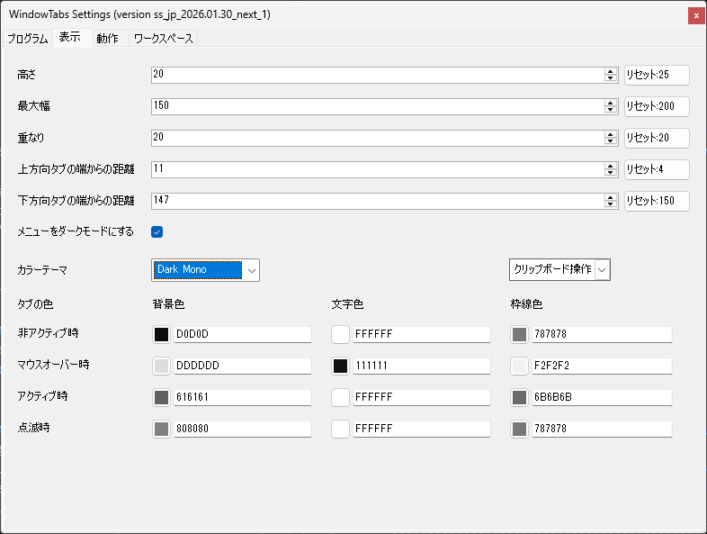 うーん、しかし、タブごとの色変更はむずいか....