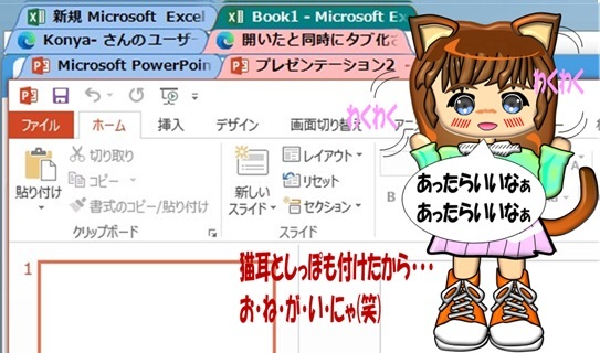 それと、いろんなファイルをくっ付けても、それぞれで新しいタブが開けるのが拍手~(ぱちぱち)