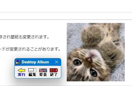 デスクトップに小さなメニューが出るのでこれに画像(BMP・JPG・PNG)をドロップ。(この時点でタスクトレイに出る)