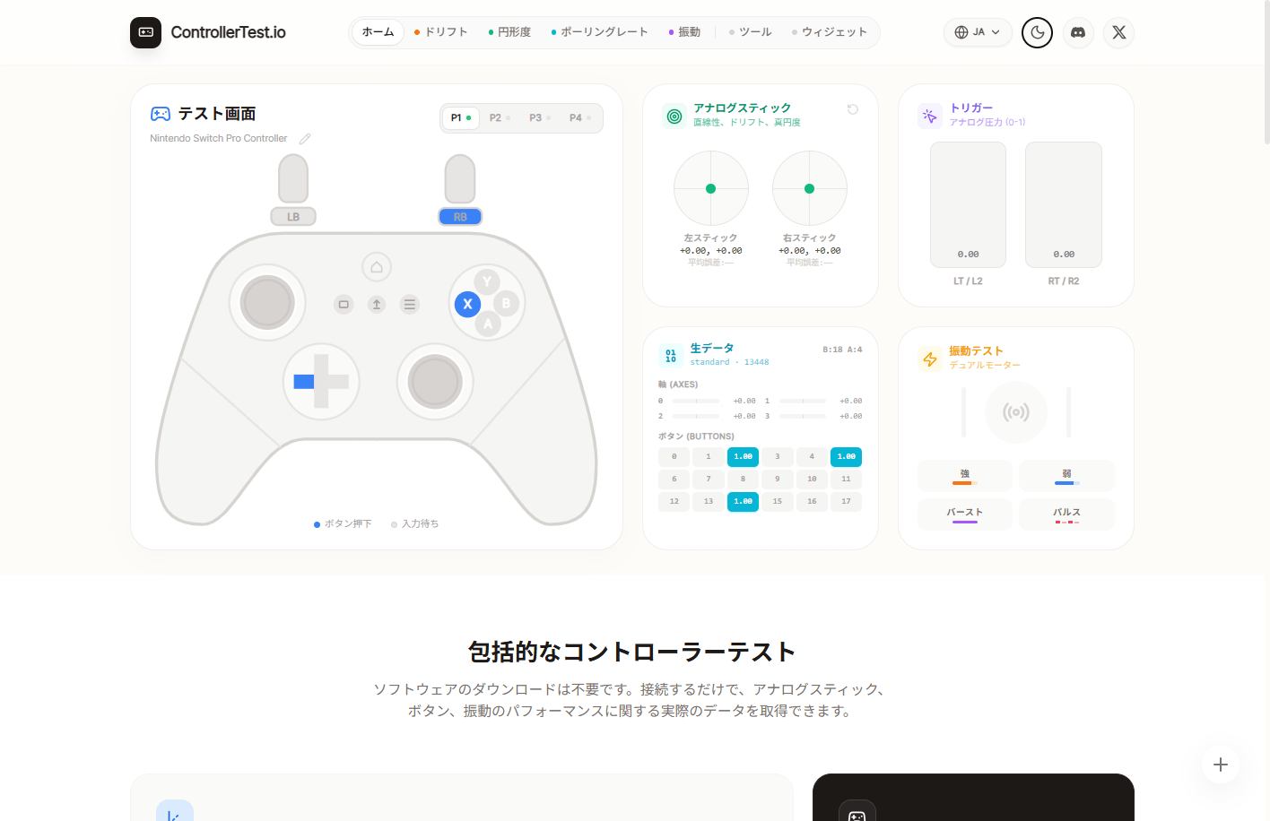 Xbox Series X/S コントローラー向けに設計されたフル機能のテストツール。