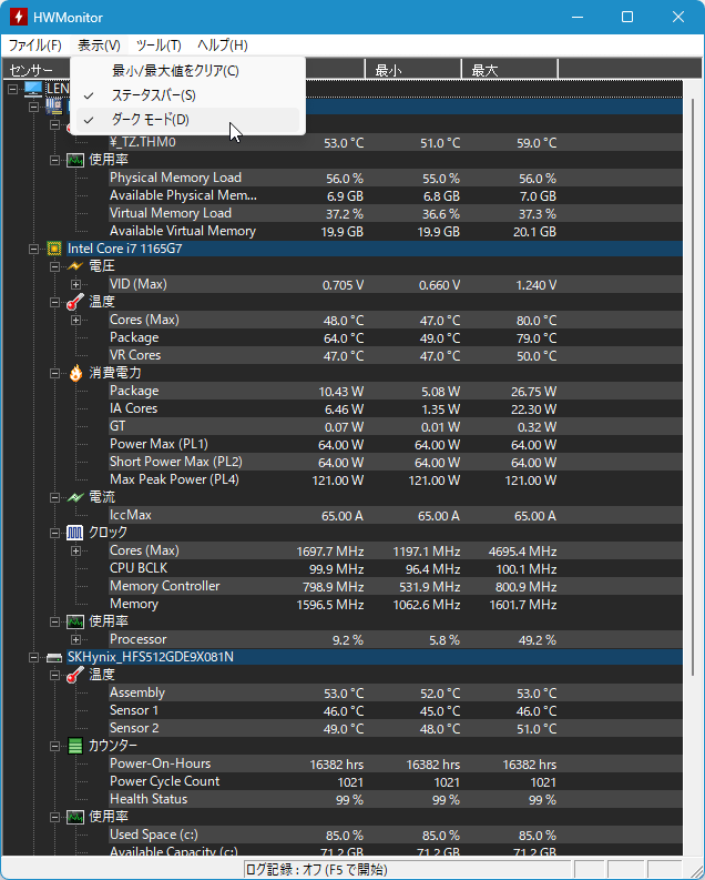 - 本ソフト(HWMonitor_x64.exe)を実行すると、日本語化されていることを確認できます。