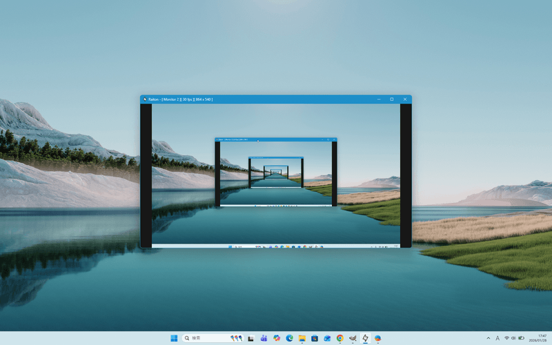 本ソフトを使うと、物理的に離れているサブディスプレイの映像をメイン画面のウィンドウとして確認できます。