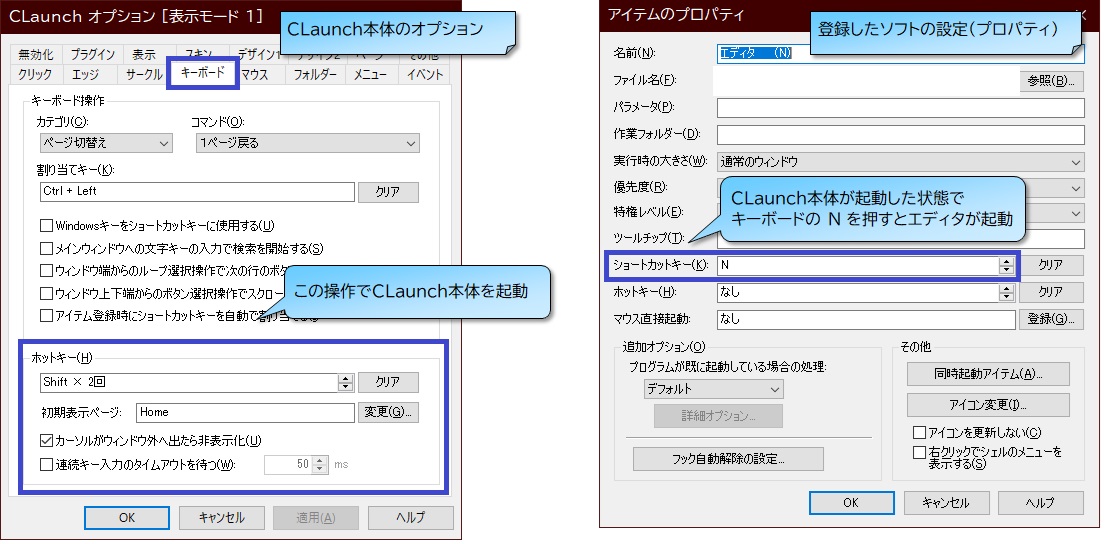 CLaunchウインドウからマウスカーソルを外したらソフトを閉じる設定は便利であり、
