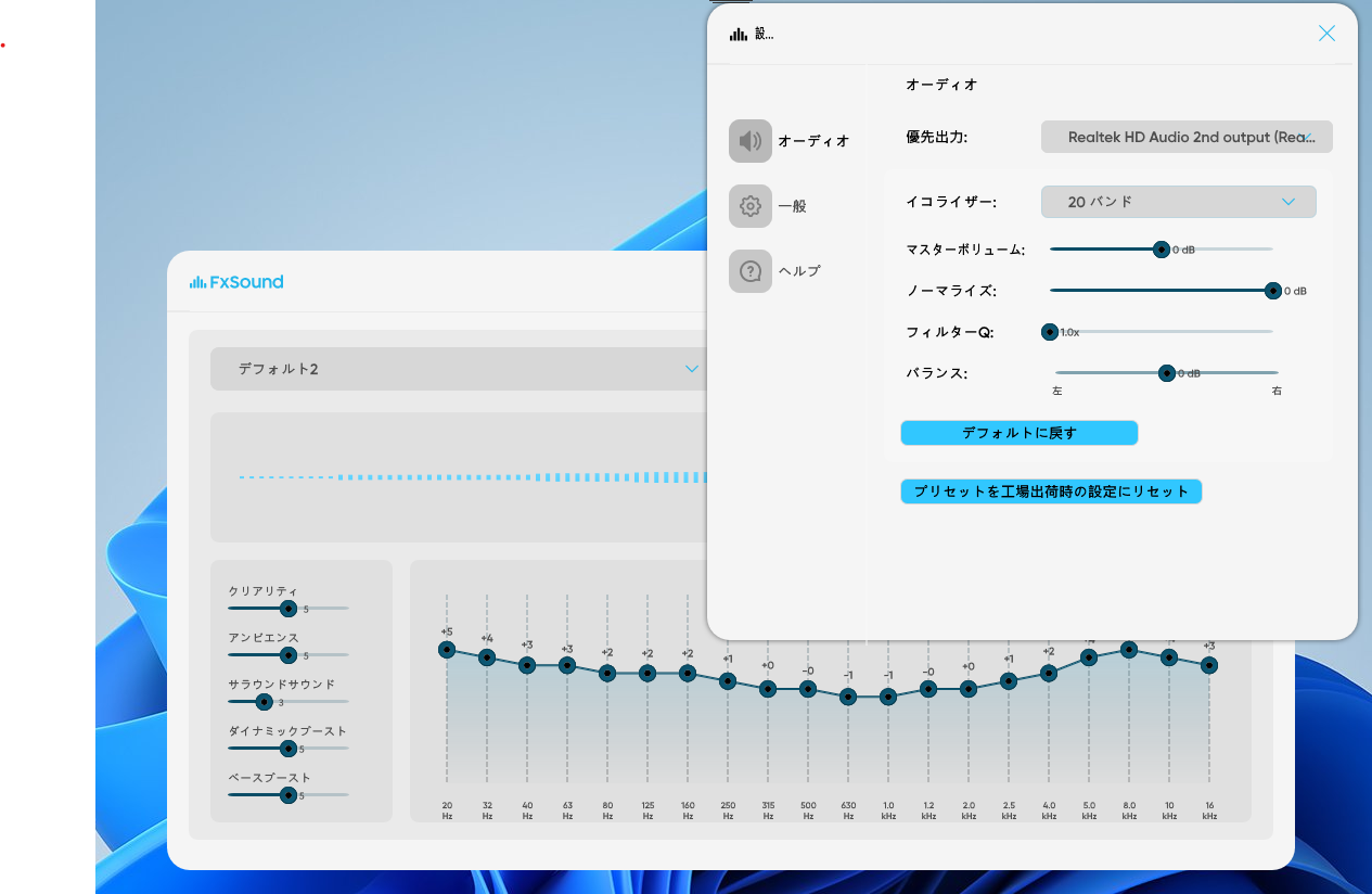 個人的には、細やかな設定が不要で、音質を改善したいと思う場合は【Fxsound】がお勧めですが、込み入った設定をして好みの音を作ろうとするのであれば、こちらの【Frieve EffeTune】をお勧めします。
