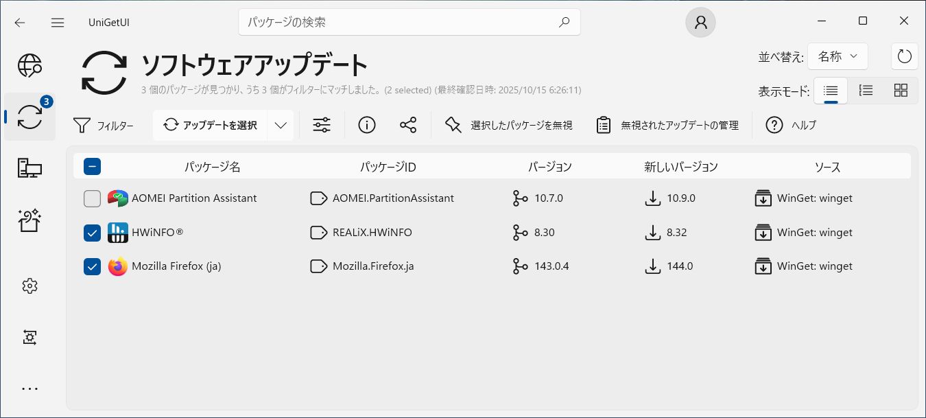 せめて、使用アプリの更新は、この「UnigetUI」で脆弱性管理を励行する所存です。