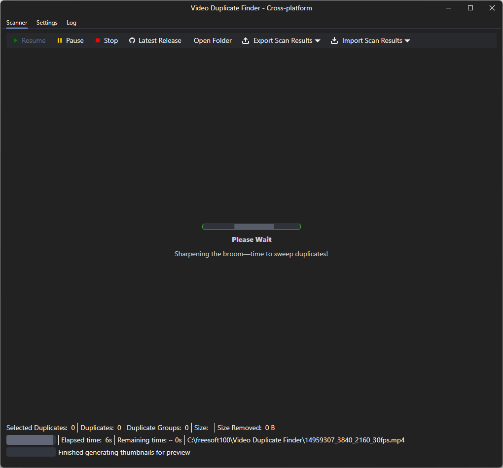 初期設定が終わるとメイン画面が表示されます。Video Duplicate Finder - メイン画面