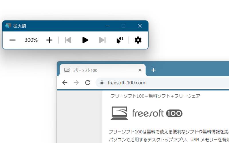 ※ Windows + + キーでズームイン表示、Windows + - キーでズームアウト表示に対応しています。